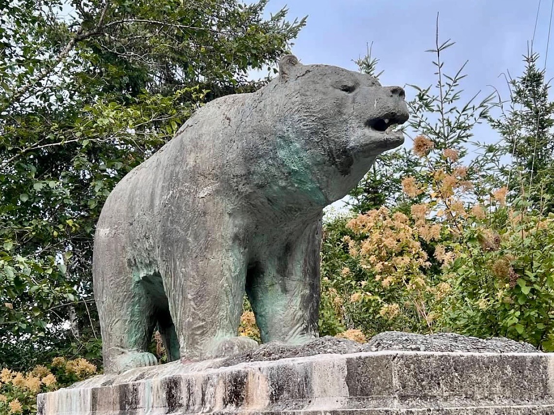 We concluded our day by taking Alder Camp Road to High Bluff Overlook – one of the most scenic overlooks in the park. The bluff overlooks the rugged California coast line. From the bluff we continued on the unpaved Coastal Drive to Klamath Beach Road to get back to 101. We really liked the bears atop the ruins of the old bridge that used to cross the Klamath River along Klamath Beach Road.